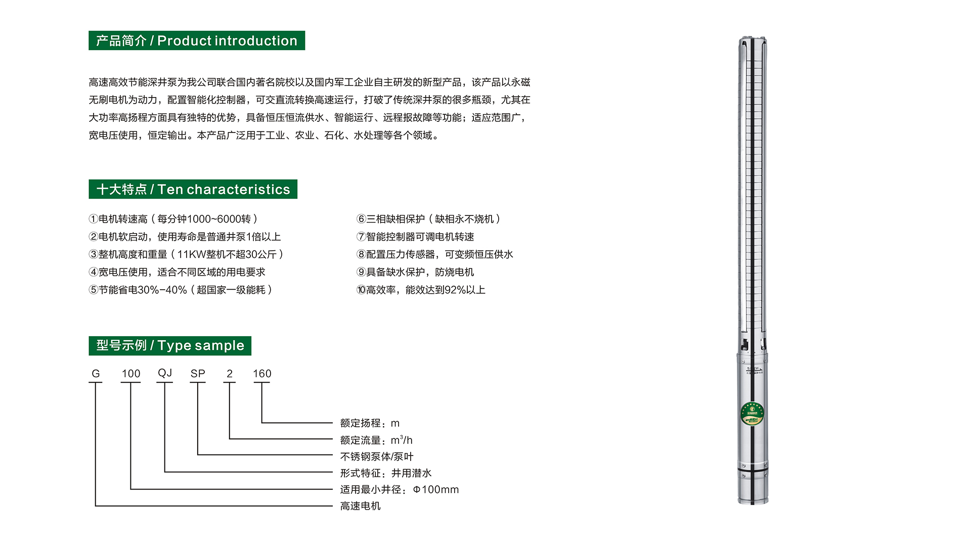 G100QJ-SP高速高效節(jié)能深井泵